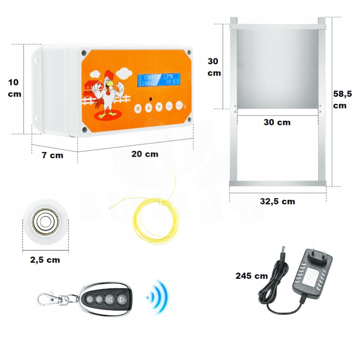 Automatické otevírání a zavírání kurníku Chicken Coop sada, strojek + dvířka 30 x 30cm s časovačem a dálkovým ovládáním