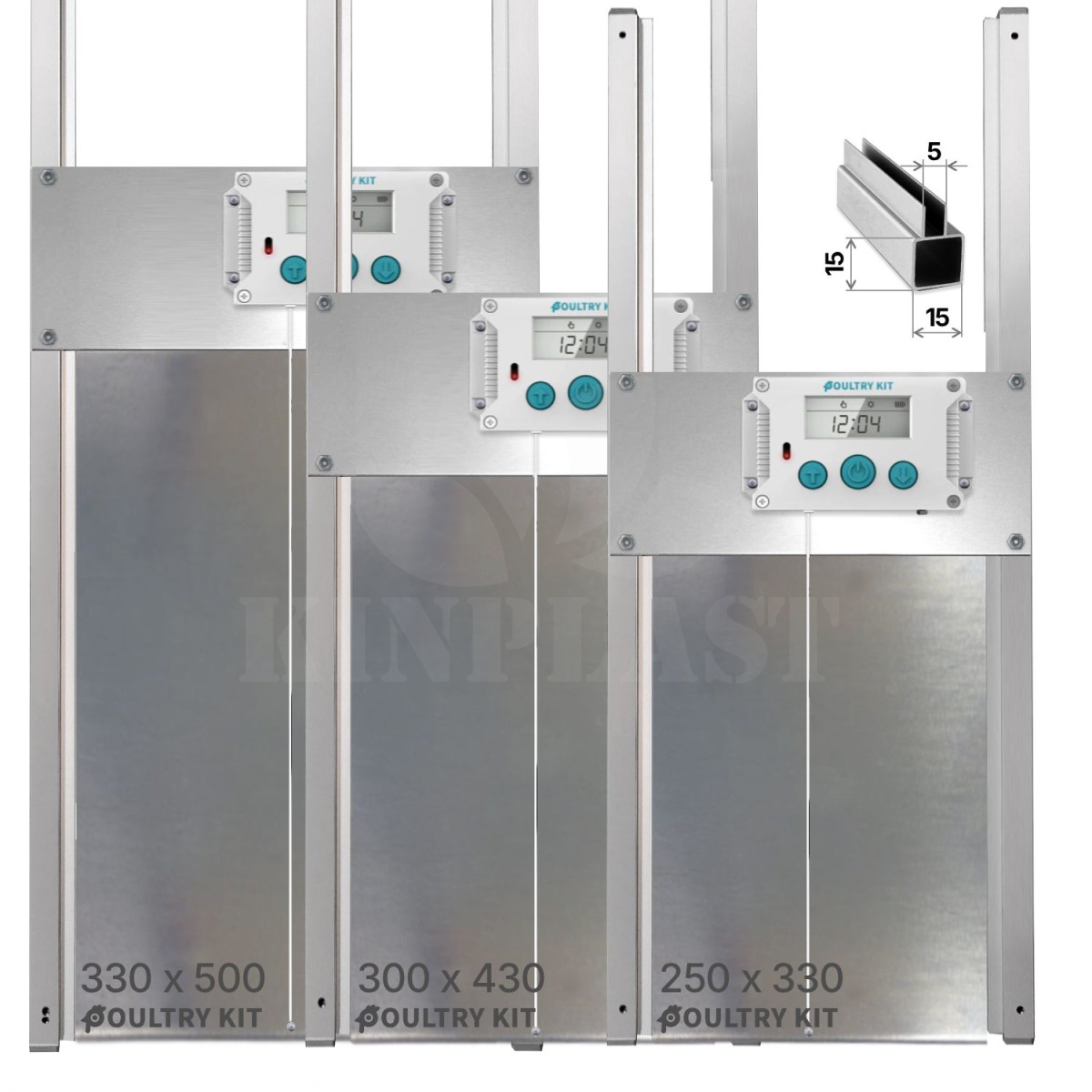 Poultry kit je odolný vůči vlivům počasí, elektronika je zabudována uvnitř a je chráněna díky vysoce kvalitnímu materiálu. Všechny potřebné údaje a informace o nastavení jsou přehledně znázorněny na dvouřádkovém LCD displeji. LCD zobrazuje veškeré informace o nastavení a umožňuje jednoduché ovládání.