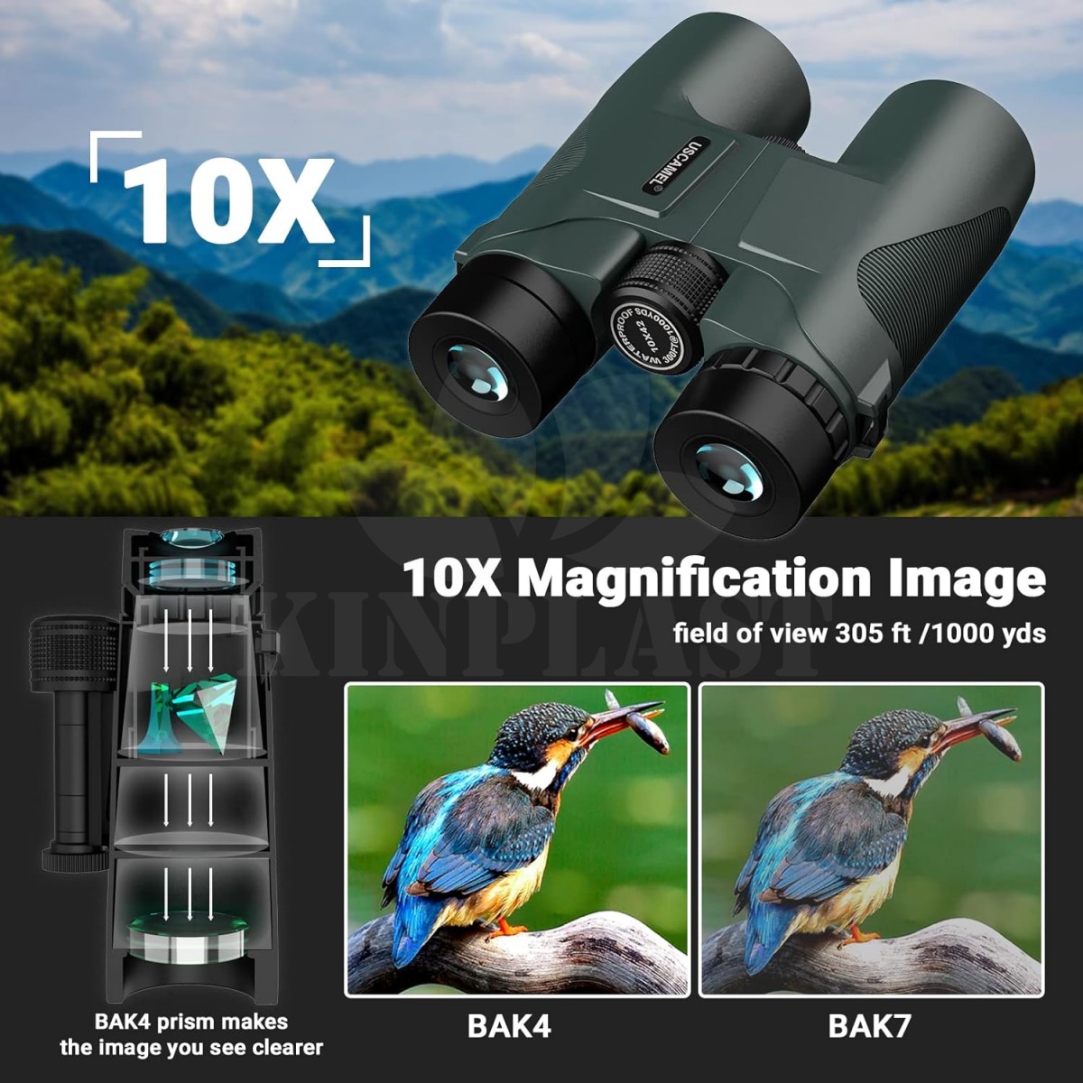 Dalekohled Uscamel 10 x 42, vodotěsné kovové tělo, optika se zeleným filmem, vysoké binokuláry, zelené pouzdro, vítěz testu