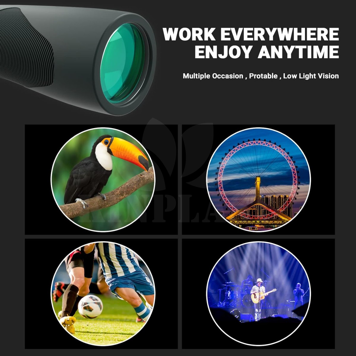 Vysoce kvalitní optika FMC. Povrchová vrstva FMC a prvotřídní hranol BAK4 zajišťují jasný a ostrý obraz. Veškerý design může většinou odrážet světlo, aby si udržel dobrý obraz a poskytl vám úžasný zážitek. Profesionální dalekohled pro všechny venkovní sporty.