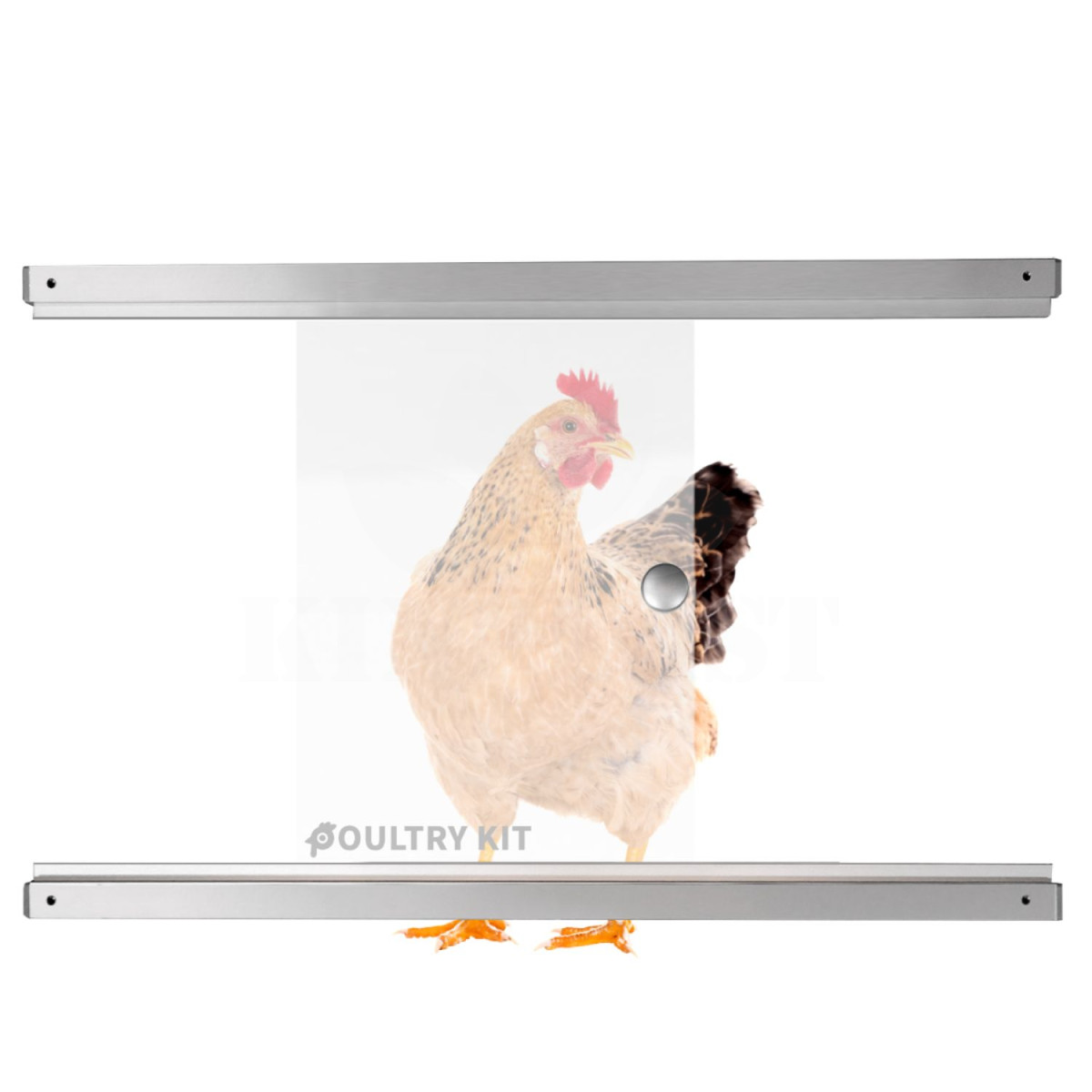 Dvířka posuvná do kurníku pro ruční zavírání a otevírání, ližiny vyrobené z kvalitního hliníku. Posuvná dvířka máme v několika variantách a velikostech. Vyberte si ze zateplené sendvičové hliníkové desky 3mm, hliníkové desky 2mm nebo 2,5mm plexiskla v provedení opál.