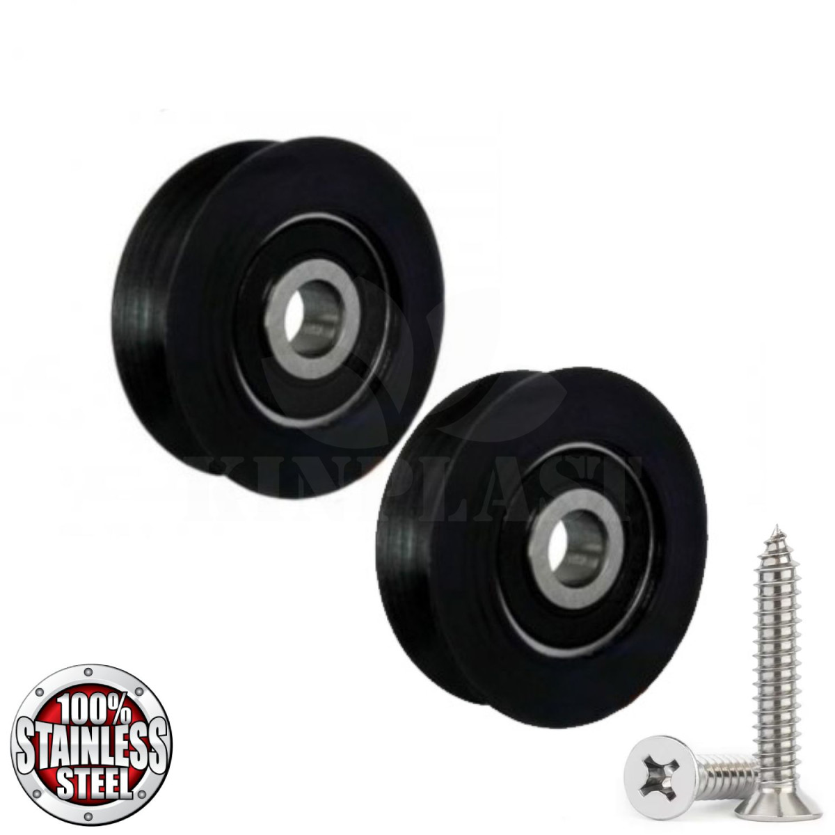 Kladky pro otvírač dveří kurníku s ložiskem 30 mm, černé 2 kusy + nerezové šrouby pro vedení šňůrky pro padací dvířka