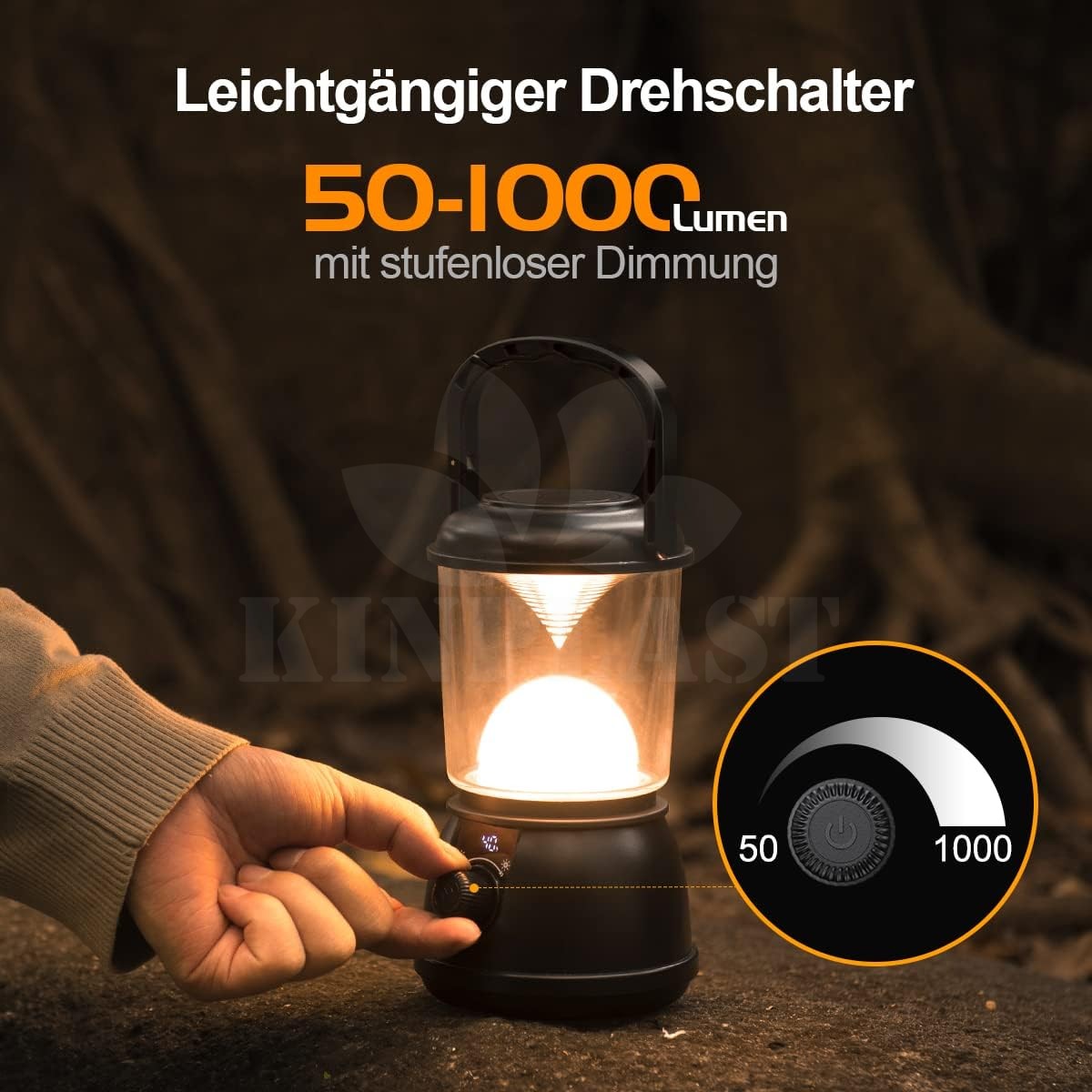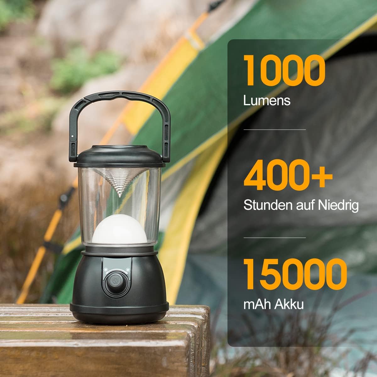 Svítidlo má ultra jasnou LED žárovku, která poskytuje extrémně jasná 1000 lumenů a nabízí 360° světelný rozsah, takže se perfektně hodí pro kempování, turistiku a venkovní použití.