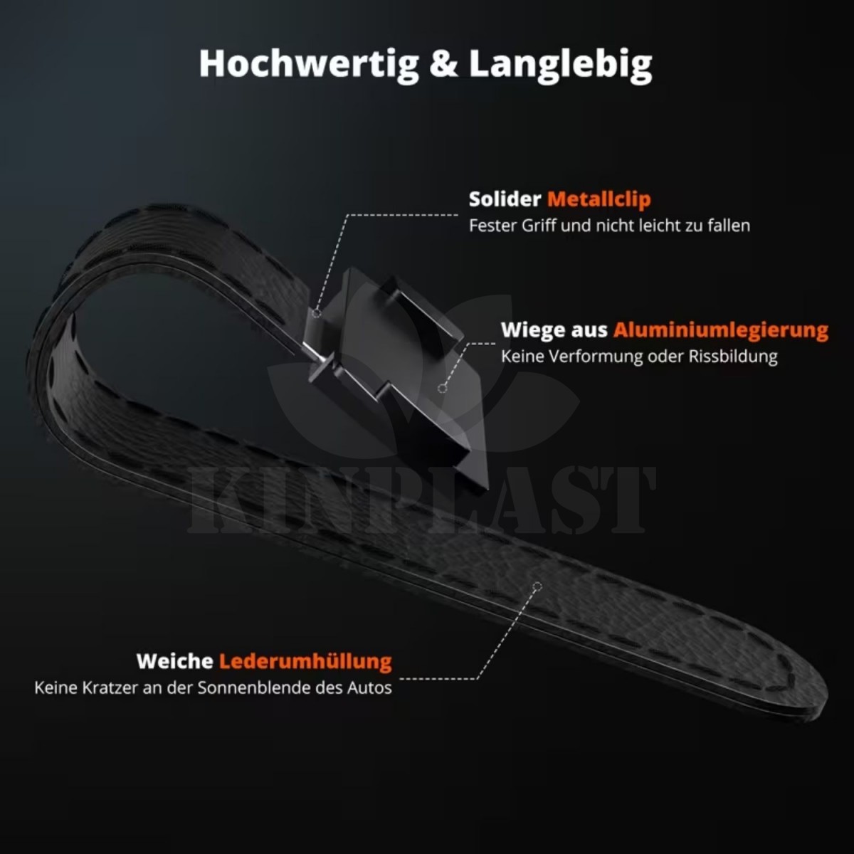 Vytvořeno pro dlouhotrvající - Našeho držáku sluneční clony tvoří kovový klip a základ z hliníkové slitiny, což zajišťuje pevnost, kompaktnost a stylovost.