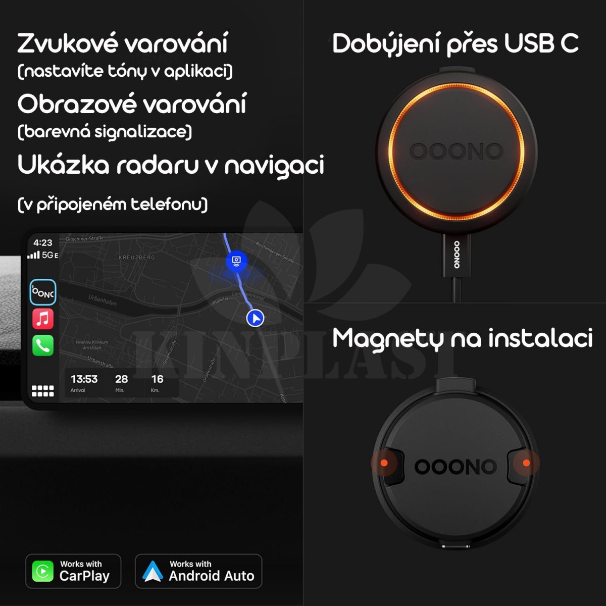 - Varování v reálném čase s Apple CARPLAY & ANDROID AUTO – Tvůj co-Driver pro akustické a vizuální signály v reálném čase. Kompatibilní s Apple CarPlay a Android Auto. Jednoduché použití pro celou rodinu, pro každé auto v rodině!