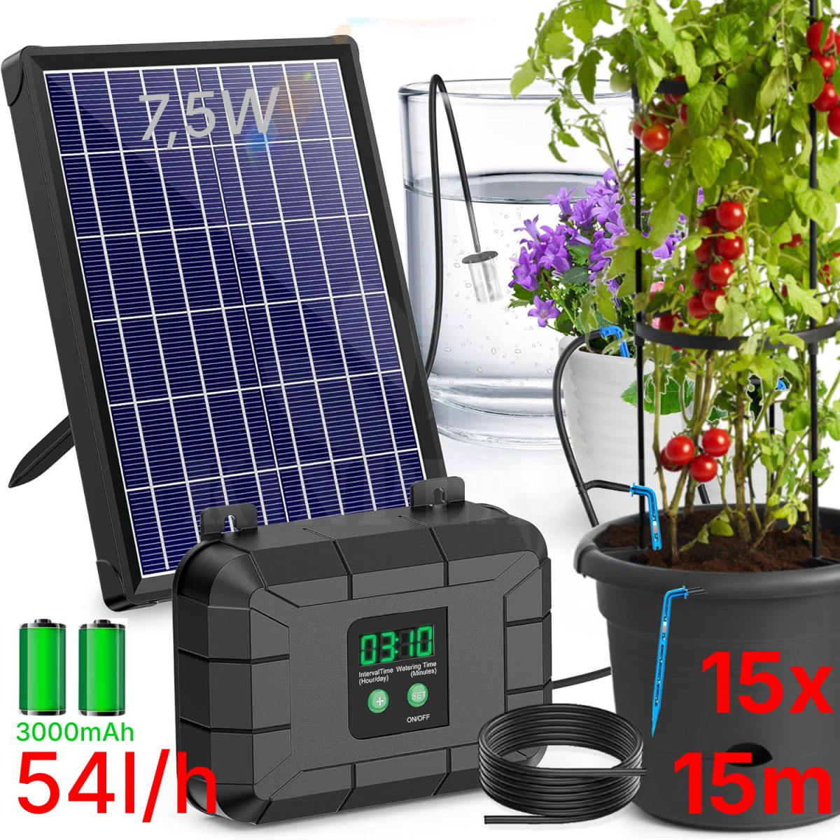Na rozdíl od jiných typů, používá náš solární zavlažovací systém výkonnější čerpadlo s rychlostí distribuce vody až 54 l/h, aby bylo zajištěno rovnoměrné zavlažování. Vhodné pro zavlažování na terase, zavlažování zeleniny, závěsné koše, hrnkové rostliny, květinové záhony, skleníky atd.