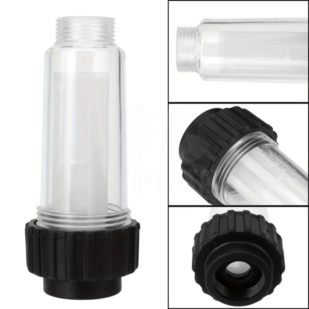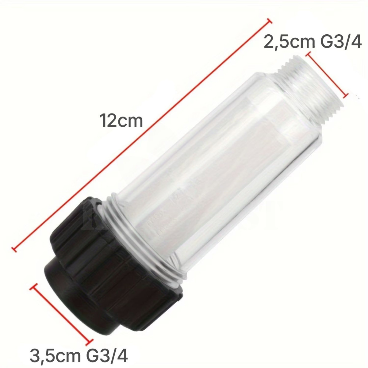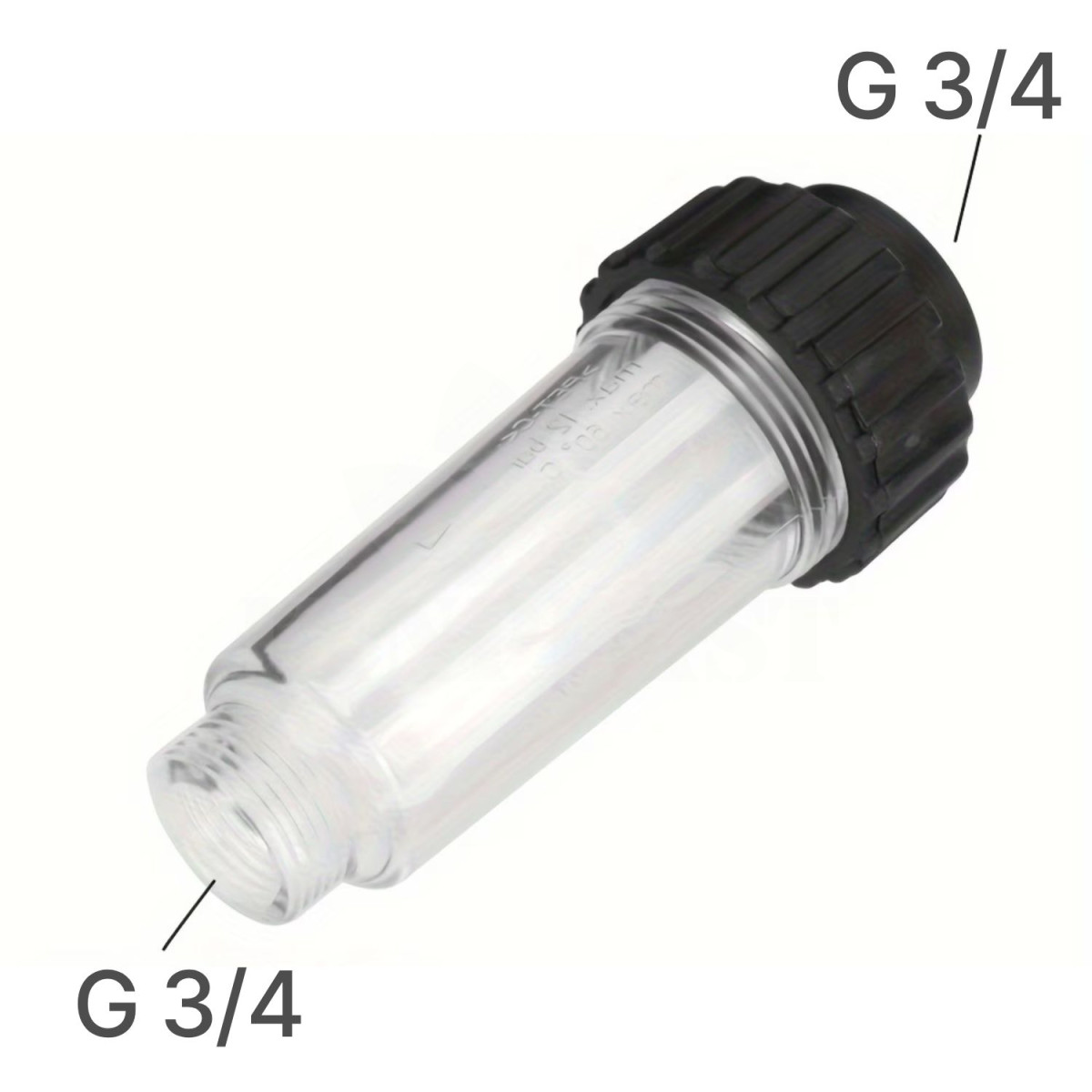 Vodní filtr s filtrační síťkou, v případě přívodu nefiltrované vody zabrání zanesení trysek postřikovače drobným kalem. Napojení: univerzální závit 3/4 a rychlospojka na hadici.
