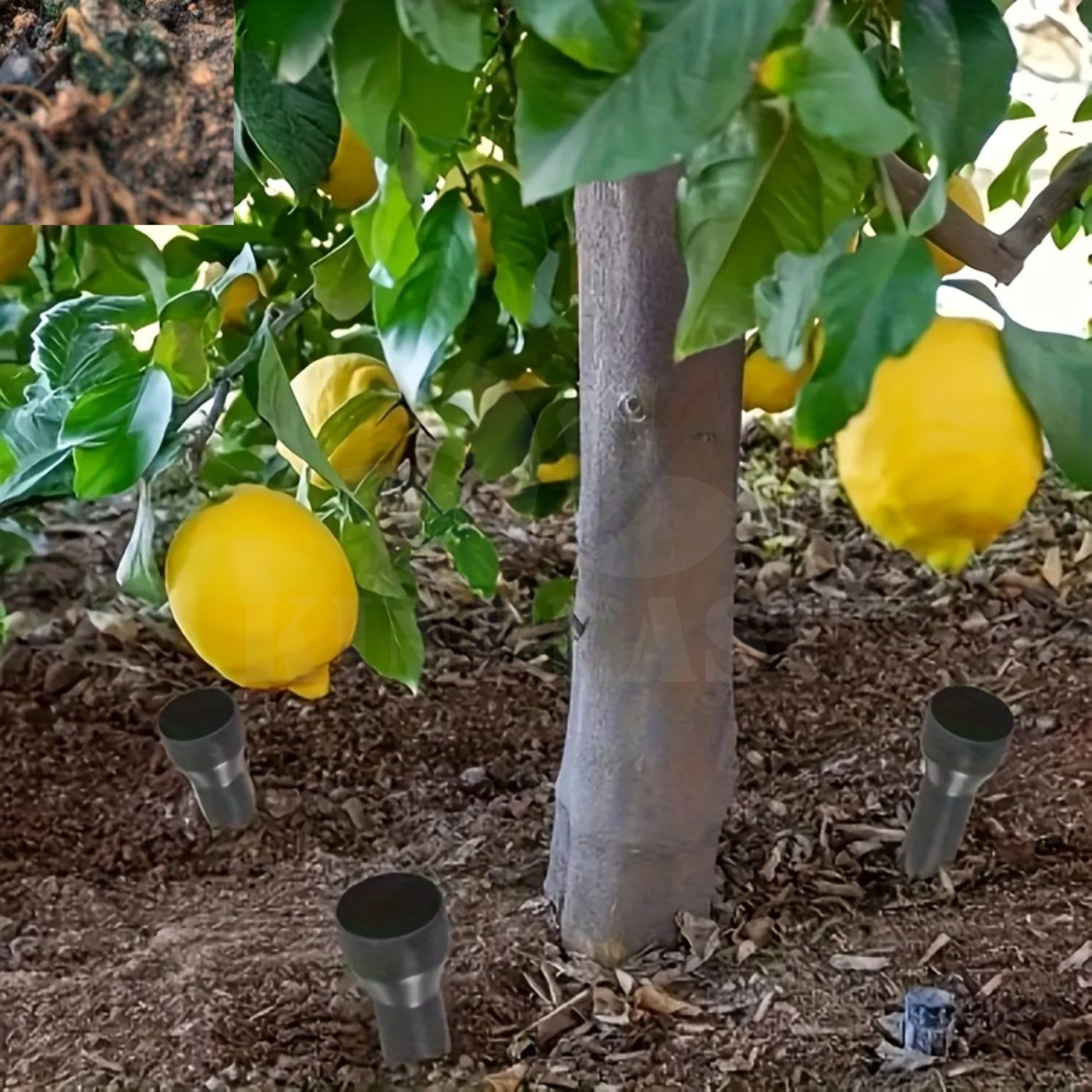 Vodní trychtýř, který šetří vodu tím, že ji vede přímo ke kořenům rostlin, aniž by plýtval vodou na odtékání nebo vypařování. Tento způsob zavlažování také vytváří zdravé rostliny tím, že podporuje růst kořenových systémů směrem dolů při hledání vody, spíše než nahoru k povrchu a nezahnívá zemina na povrchu.